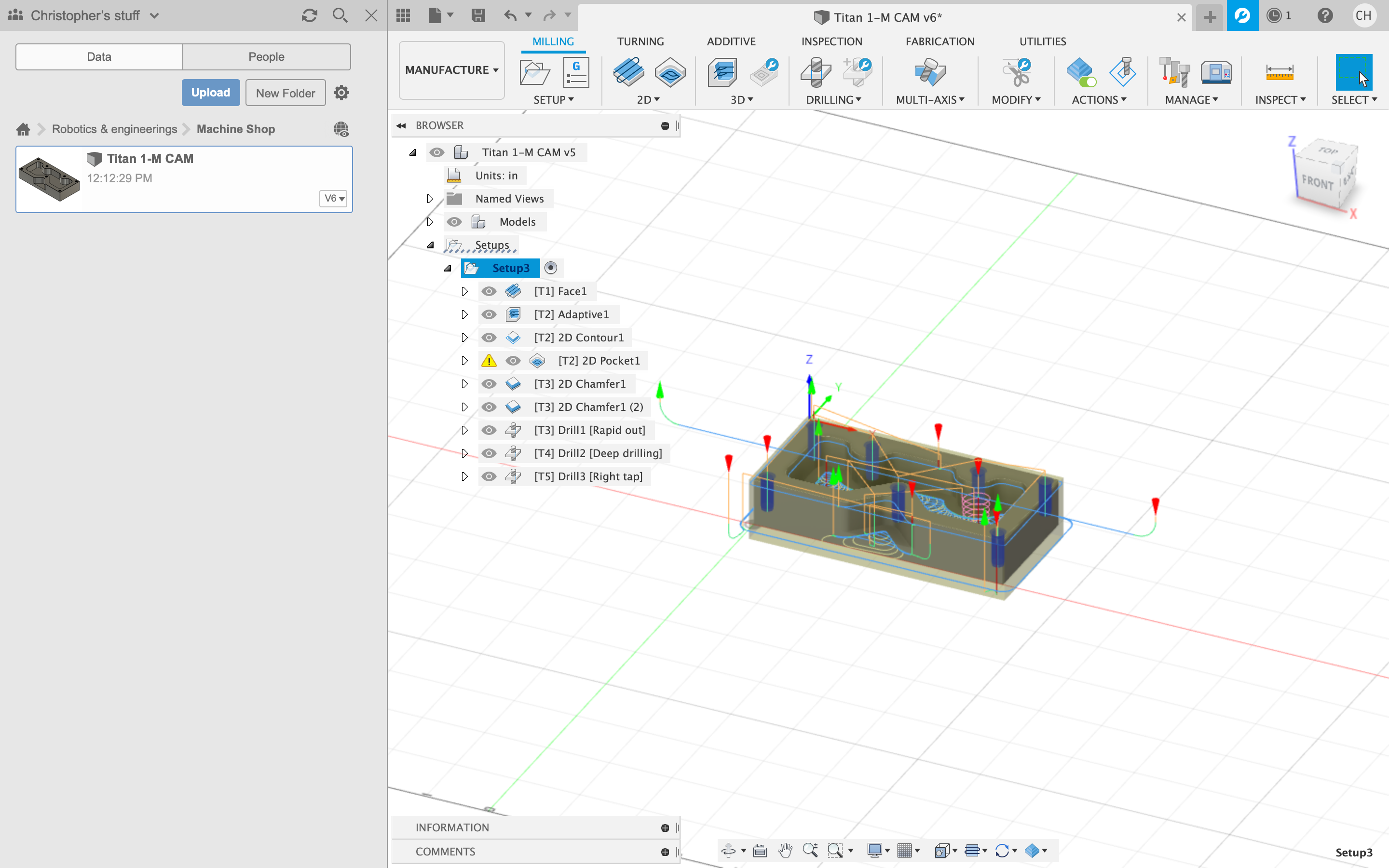 The Upperclassmen spent some time learning how to transition their CAD models into the Fusion 360 CAM interface. Our students have become very adept with their model making skills, and now we are beginning to understand how to translate these designs into CNC files for use with our many different machines including our router, lathe, mill, plasma cutter, and water jet. Below is a small sample of their work.