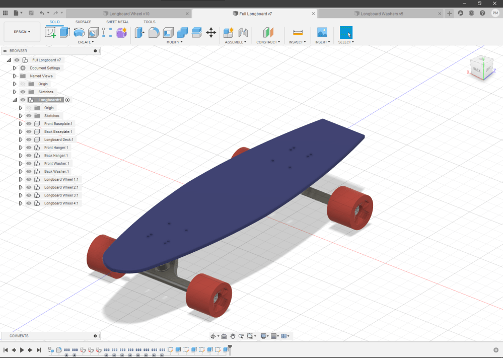 We are back from the holidays and ready for 2021! To get the New Year going, our upperclass students have been working on an electric longboard project. The goal for the project is to become proficient in a variety of modeling techniques and to build a complete electric skateboard from the ground up. Students began modeling the trucks, bearing, and wheels, and then assembled those parts onto a completed deck. Check out some of the examples below – really good work from these students.