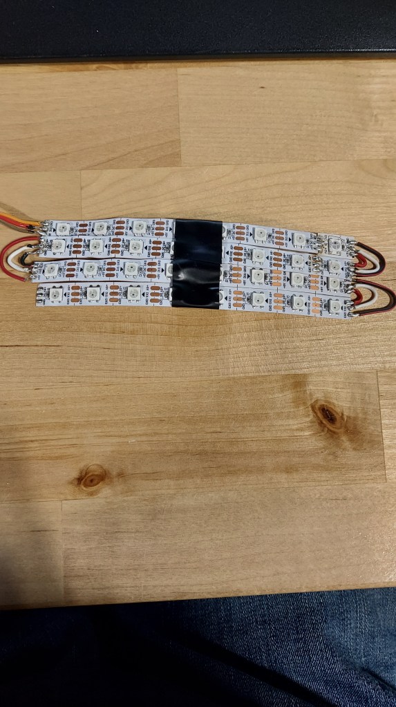 This is the weekly blog post written by Joshua Pahang ’23. For the past few weeks I have been working on this Neopixel bracelet. This project requires different materials which I have tried my best to adapt to. Although there have been a few hiccups and malfunctions, I have created several codes that display different light patterns on the neopixels. I have soldered the neopixels together using a very scuffed method of taping them down and soldering the wires into the matching ports. All I need to do now is adjust the 3D model of the wristband on fusion to fit all the parts and find out how to connect the battery charger, trinket, and switch together.