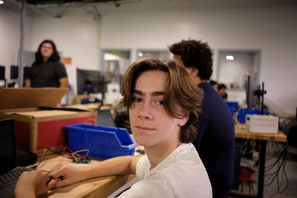 The Sophomore class began the year with electronics. With the large number of bodies in our classroom during the afternoon classes, many of the sophomores have brought their own laptops or are using school distributed computers to complete their work. Next week they will transition to a week of CAD and machine shop work.