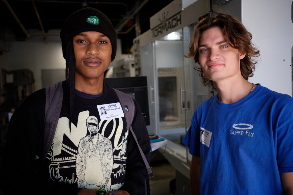 We also received a visit from recent graduates Myles Youngblood and Dylan Smith. Myles was helping to troubleshoot the waterjet, and both wanted to chat about their futures.