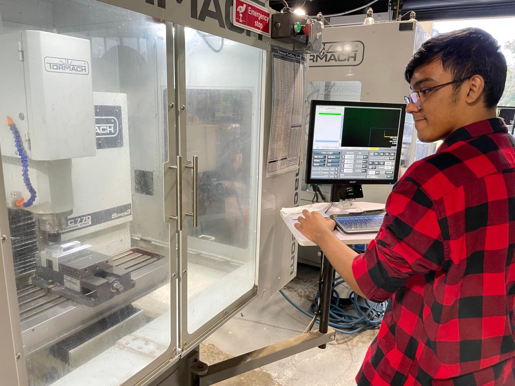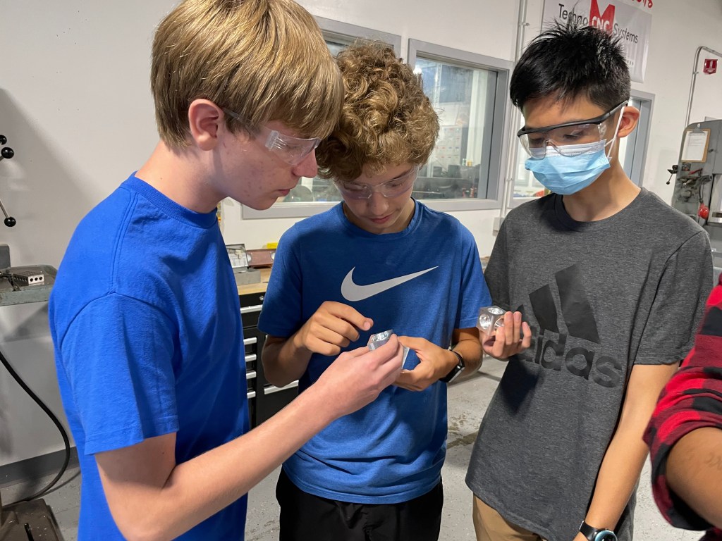 Lots of work happening throughout the Engineering shop this week. Many students from all grade levels continued working in the machine shop. Most were finishing off their Turner Cubes. Sophomore Aaron BenDaniel turned teacher this week helping fellow classmates Ben Wirz and Will Tseng brush up on their milling skills. Additionally, sophomore Tanzerul Azam learned how to program the conversational input on the Tormach machines.