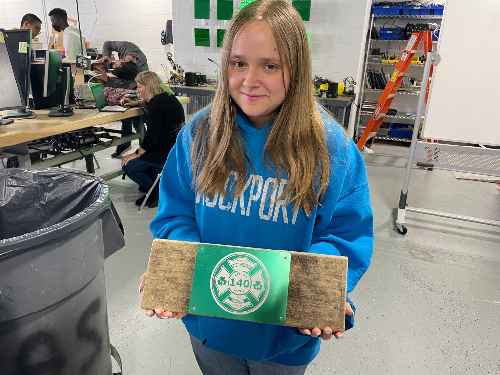 There was a lot happening in the shop this week, so forgive me if I fail to mention all the good work we saw. As a follow up from last week, Senior Jackie Whealan finished the anodized lasercut memorial for our electrical shop teacher Mr. Cormio. We think the finished product came our very well, and are happy to be able to provide these types of services to members of our community.