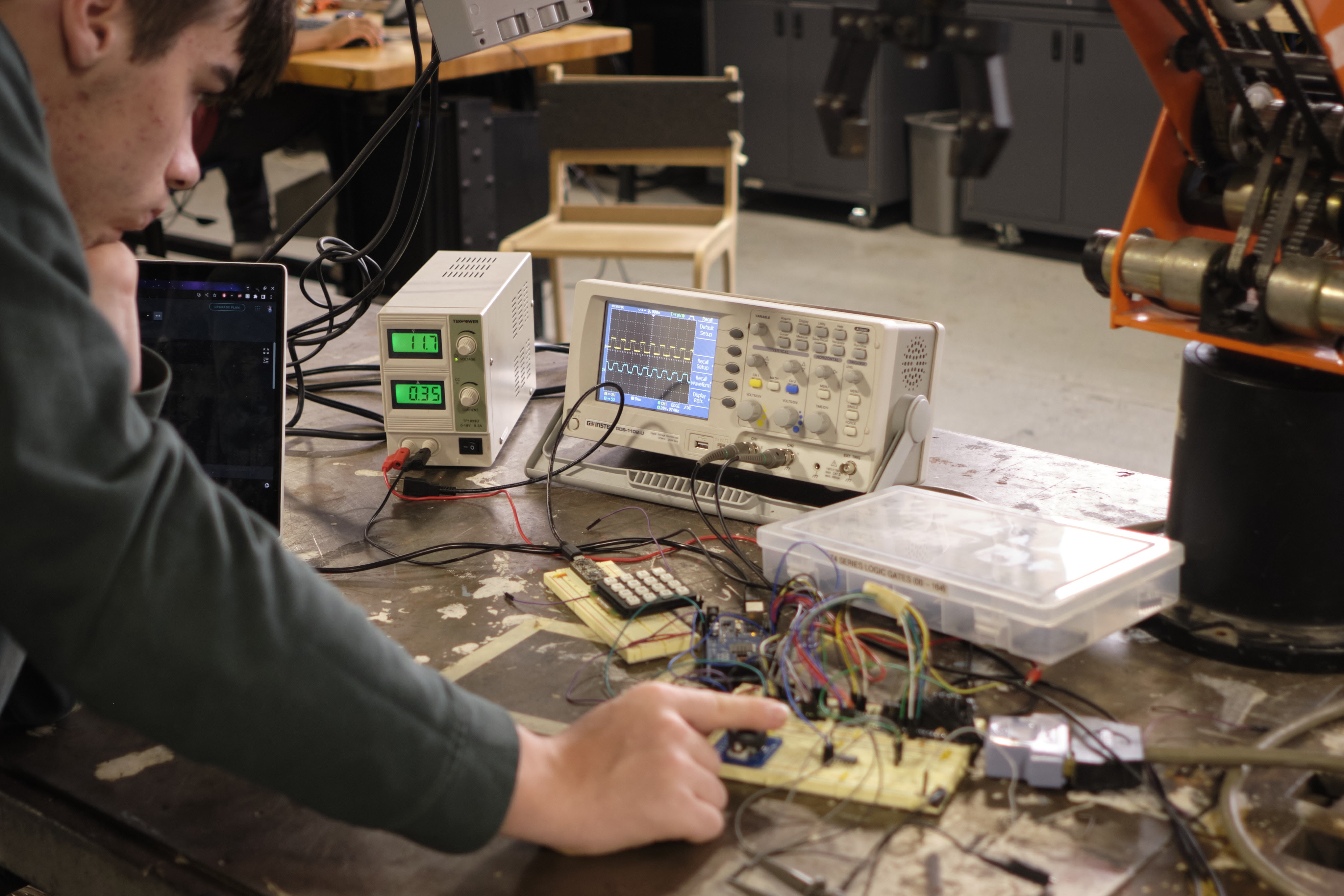 Also, Junior Nate Hopper was able to utilize a Schmitt Trigger to turn a messy square wave from a robotic arm’s encoder into a clean square wave that can be used by a microcontroller.