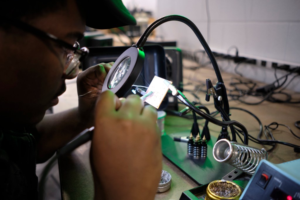 Senior Prince Altidor has also been working on creating a custom PCB for his shelving unit. Prince has designed everything for the shelf in CAD, and is now adding his custom PCB to the working model. He has finished soldering components to his PCB, and will be ready to get working on making the actual shelf soon.