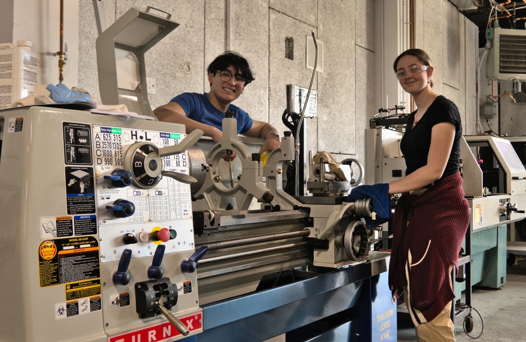 Additionally, this week we finally were able to place our brand new Southbend lathe into the workshop. This lathe has been sitting on a palette waiting to be moved for some time now, and we are happy it is now in place. Students Grace Kallberg, Clark Barayuga, Ben Wirz, and Jackie Whealan spent time with the machine cleaning off the Cosmoline coating meant to protect the lathe from rust and corrosion during shipping. It is a tedious process, but a necessary one.