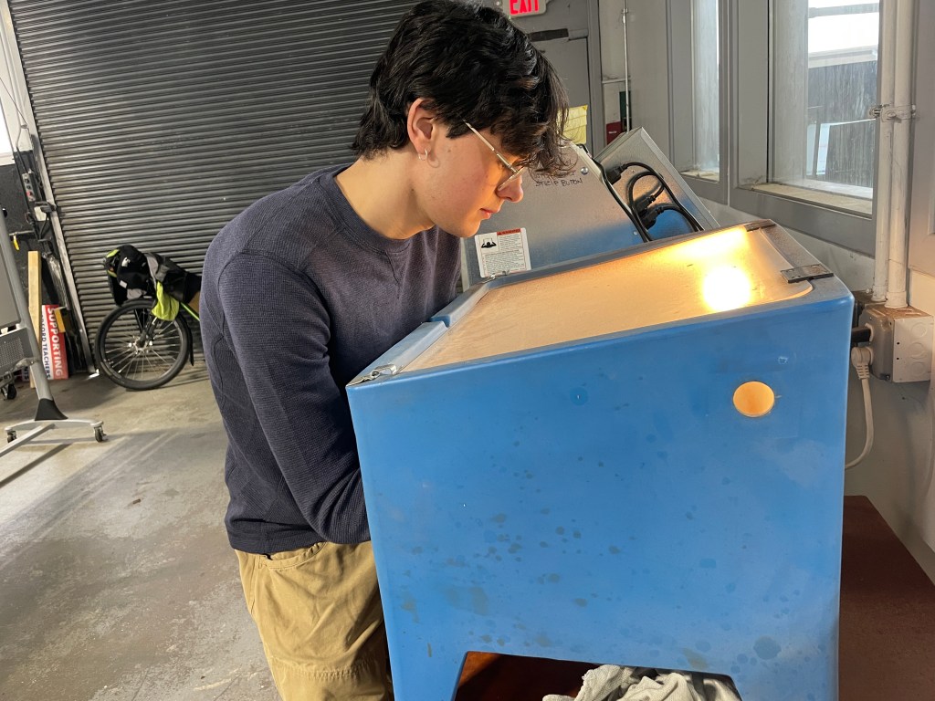 This week I finally starting making my jersey frame a reality. We had MLK day on Monday and Mr. L was absent Tuesday, so I wasn’t able to route until the middle of the week. While I was waiting for Mr. L’s return, me and a few of my fellow classmates took down the flood gates that we put up last week in anticipation of the storm over the weekend. There wasn’t a single drop, so we folded everything up and put them away for the next storm. After that, I recruited Milo Austin to help me start routing my jersey. The first step was making DXF files of all the different sides of my frame in order to get them on VCarve in the shop (Vcarve is the application used to set things up for the router). We were able to get everything in, however we faced several challenges that stood in out way.