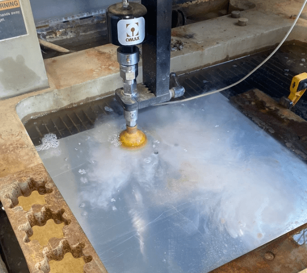 The Freshmen closed out the year in the machine shop using our water jet. Students designed custom name plaques in Fusion 360 using the Sheet Metal tools function. They were then able to export these files to the water jet, which cut them as flat pieces of aluminum. After that, they used our pan brake to bend metal to the correct shape. We hope to make many more projects with them in the machine shop next year!