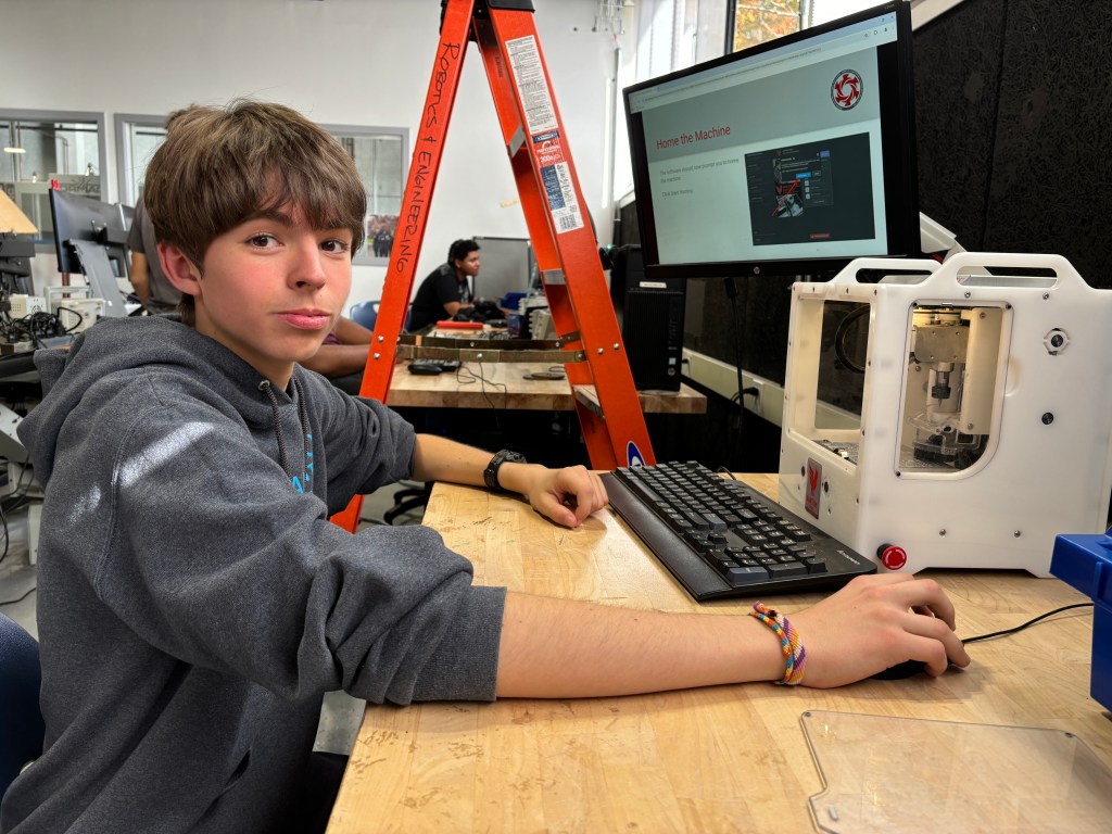 Junior Alex Pilika worked in the machine shop learning how to use our manual milling machine.
