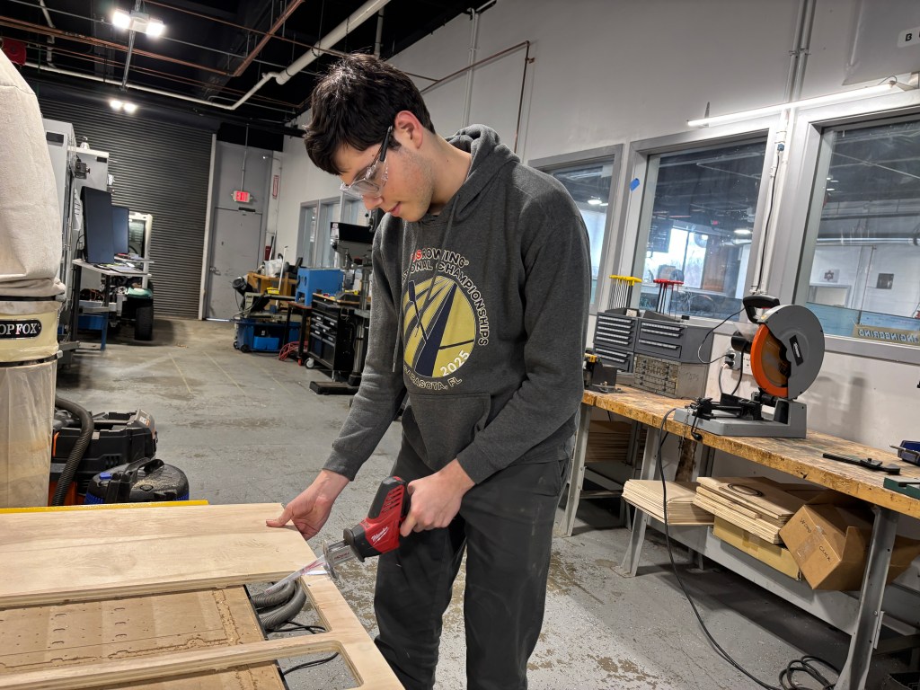 Junior Lila Graham ’27 is nearing completion of a custom storage shelf project:
