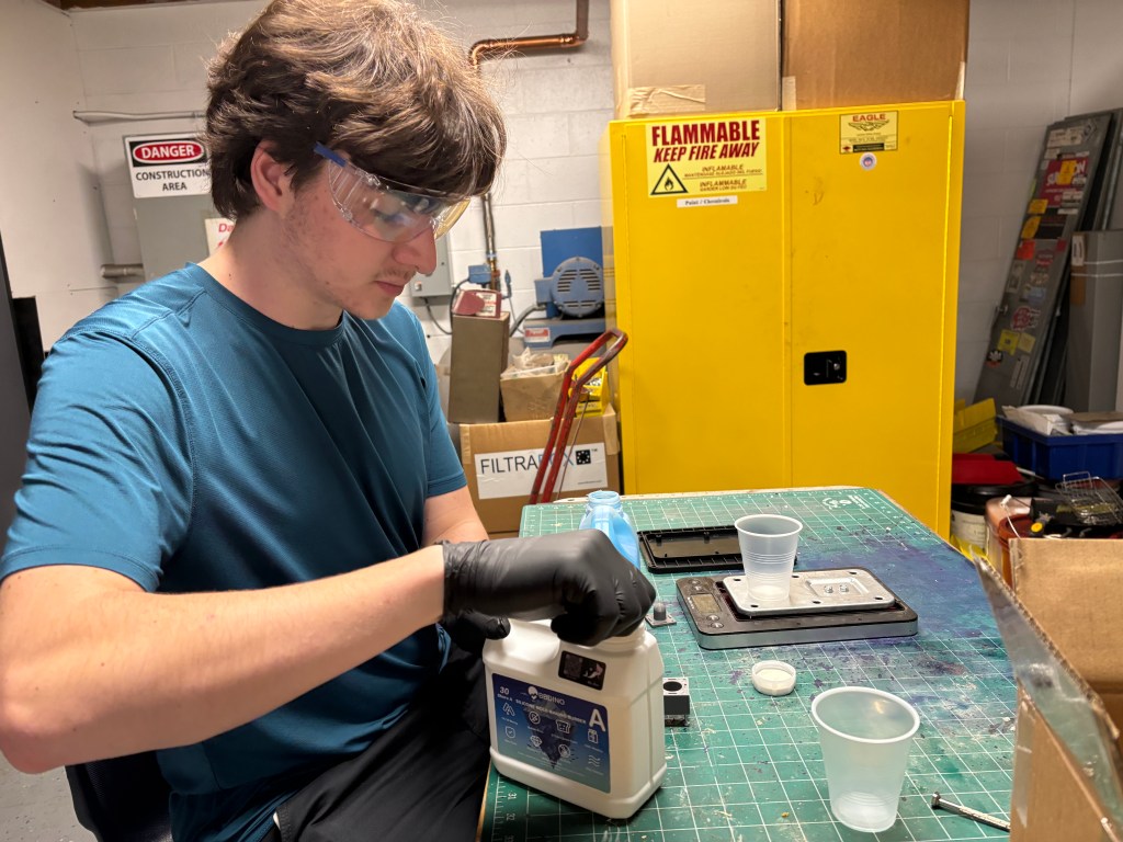 Senior Matt Stricker ’26 and Junior Andrew Huang ’27 learned about silicone molds, and used a 3D printer to make molds to cure silicon parts for their projects. This is something we have not been able to do in the shop yet. Test results look positive!